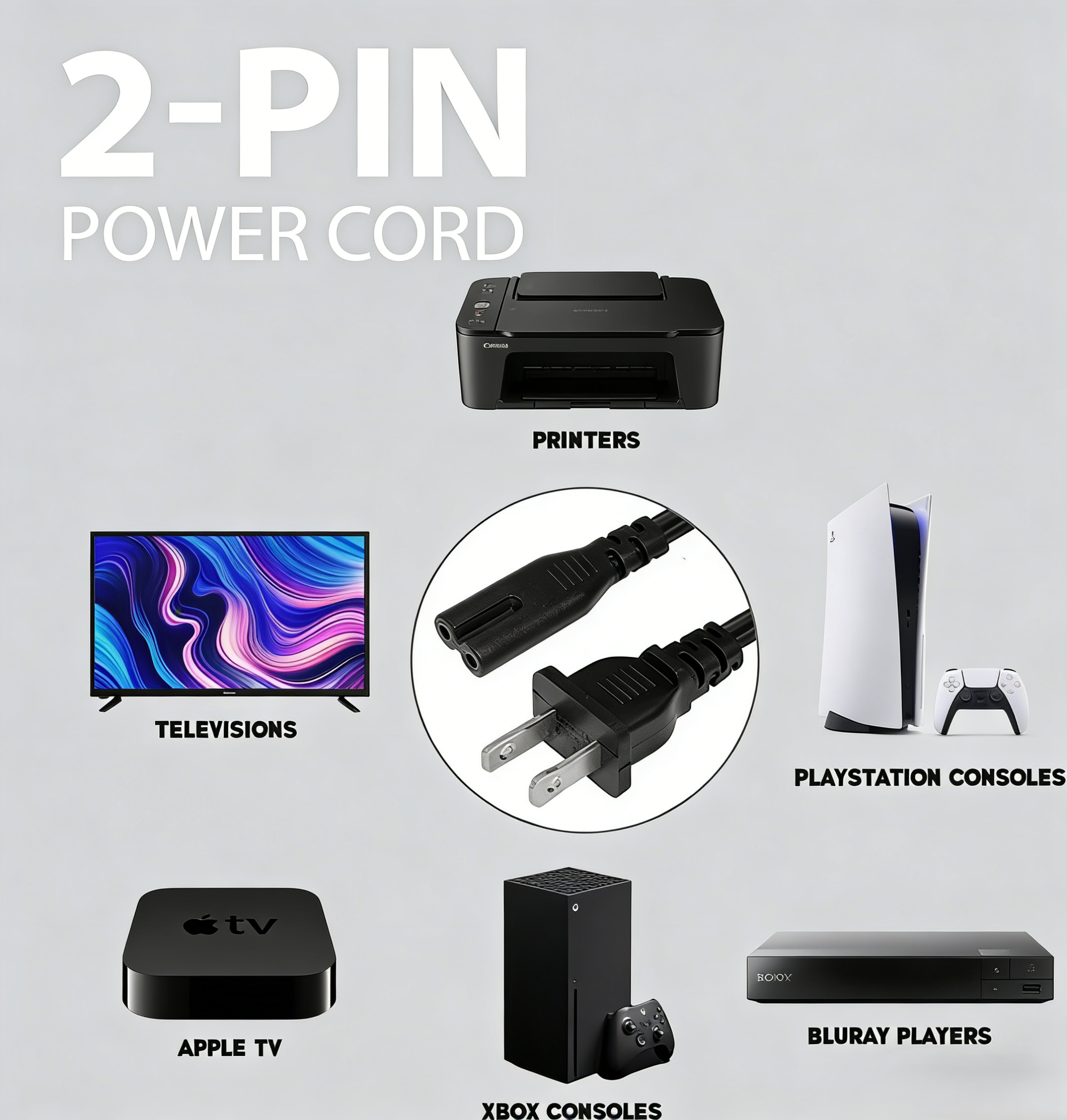 - Wide Compatibility supports various devices with C8 2-slot ports including TVs monitors speakers printers and many entertainment devices