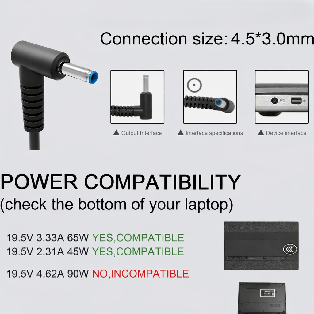 - Fit for HP laptops with 4.5 x 3.0mm blue tip connector for flexible replacement use